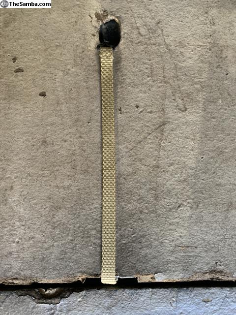 I recently found a very similar in color nylon material that is much stronger than the original cloth straps VW used. You will need to sew your own hook on. I will send 14" of material which gives you about 2" extra inches to make the length you want.