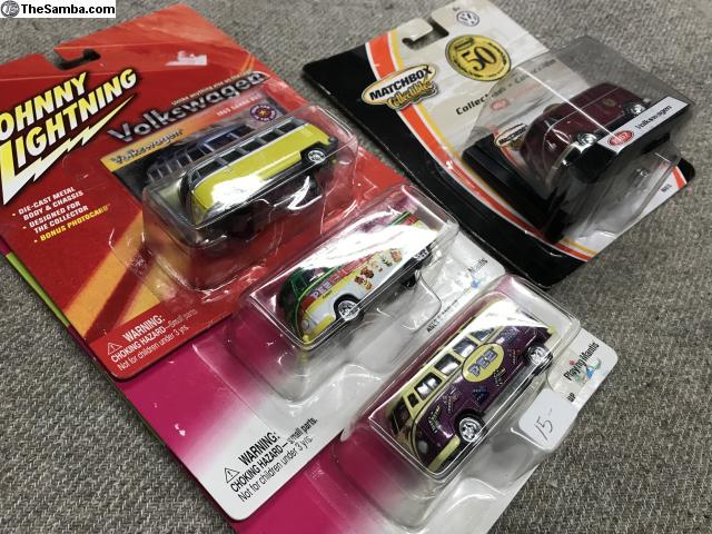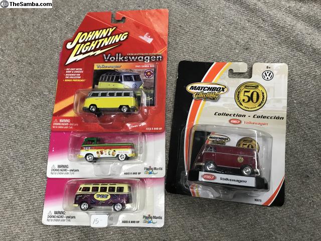 Misc VW Bus 1:64 toy car lot Price: $12 each your choice! Three Johnny Lightning from the early 2000’s and one Matchbox 50th b-day issue panel Bus.