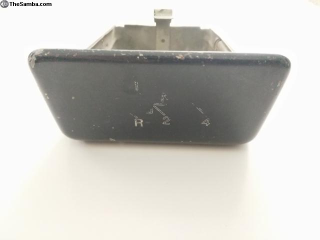 Ashtray in VW blue original paint. This has a stamped shift pattern. Does not have the sleeve or bracket.