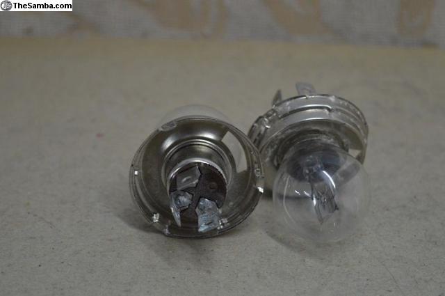 TWO ( 2 ) New Old Stock 6volt 45/40Watt P45t headlight bulbs in MINT UNUSED Condition.