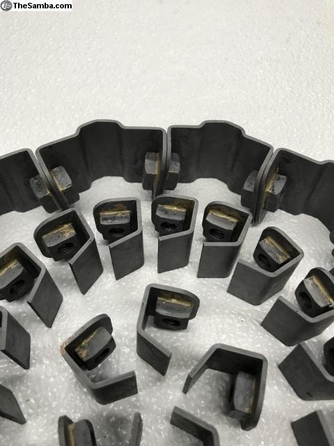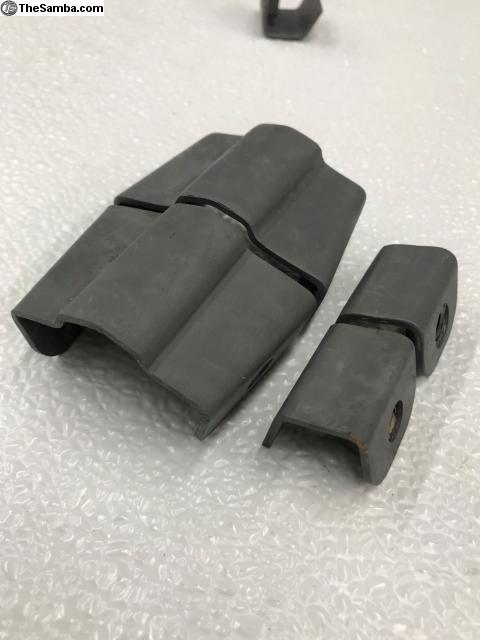 Now available ,Barndoor style Safari weld-in brackets , same spec and shape as originals. These are correct for Barndoor bus up into Wolfsburg post Barndoor buses. I have not pinned down the cross from this style to the later style but have confirmed non Barndoor 55 uses this style. Speculation is that this is a Wolfsburg bus style bracket.