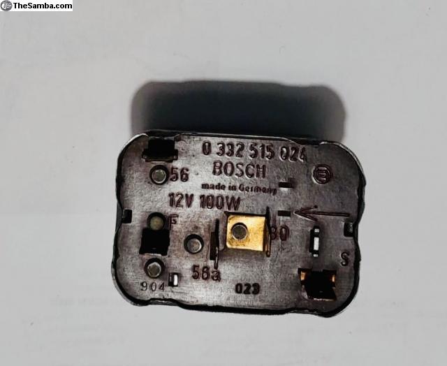 VW 12V 100W Bosch headlight relay 0 332 515 024. Very good working conditions. Bench-tested