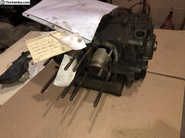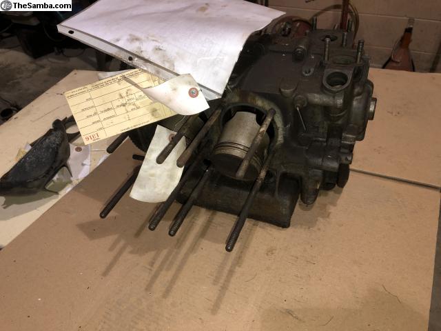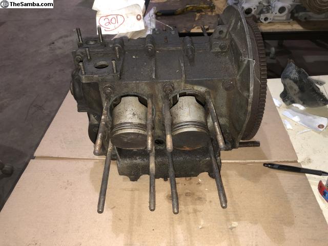 GOOD SHORT BLOCK CASE WITH CRANK RODS AND PISTONS TURNS OVER WELL ..