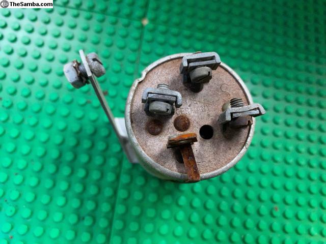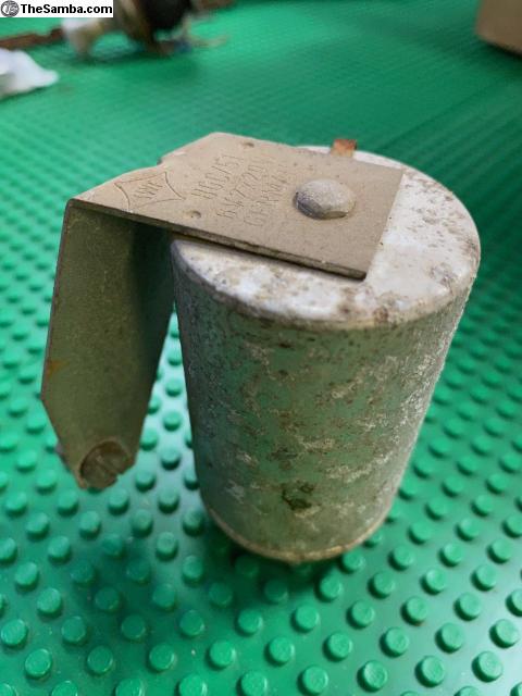 Untested SWF 6 Volt relay from a 1960 Ghia. If you're handy with electronics and can get this to work then your bone stock restoration will benefit from having the real thing under your hood. Missing one screw.