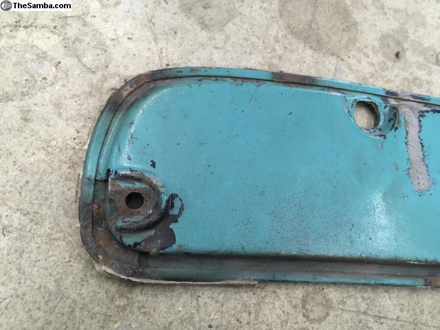 This is a funny one. Dug this out of a box of parts, and was like, what am I looking at? This is an oval glove box door that was formerly bondo'd into the dash of some poor oval years ago. Looks like someone chipped it out of the dash and saved it for future generations to marvel at. Honestly, it looks to be in pretty good shape, but I have no idea what it looks like under the bondo on the outside. The inside looks nice, with the hinge holes in good shape and all. Get your sander out and find out for yourself! Price includes shipping to the lower 48, local pickup and international shipping available.