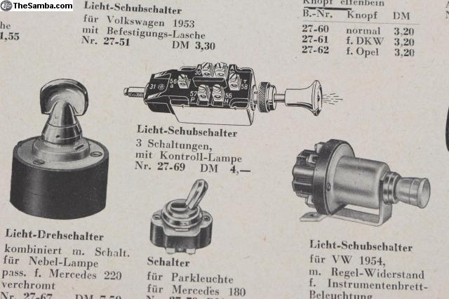 Lighted switch fog lights VW Porsche 356 NOS Price: 95€