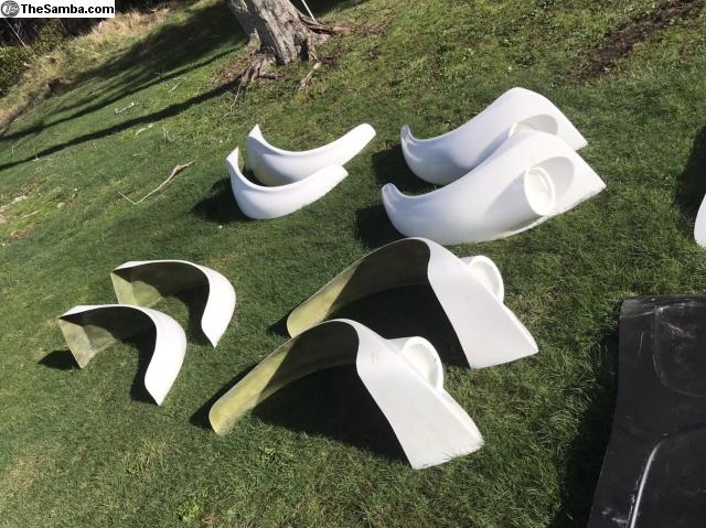 Brand New.  This is a 6 piece set of brand new never been fitted parts for an air cooled VW bug. Includes front and rear fenders, hood, and nose piece. The pictures of the finished cars are just for visual reference.