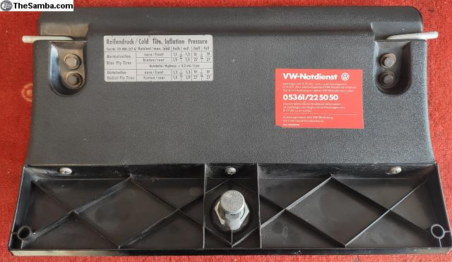 For sale super Beetle glove box lid with. Very nice condition. Latch works as it should, nice stickers