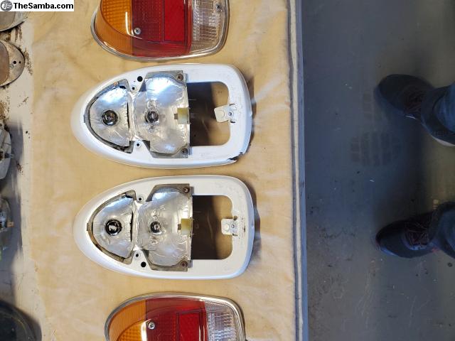 Nice Set, reconditioned OG bulb holders, Aftermarket Euro Lenses, unbranded, Housings are usable, but need some work to be perfect. See pictures.