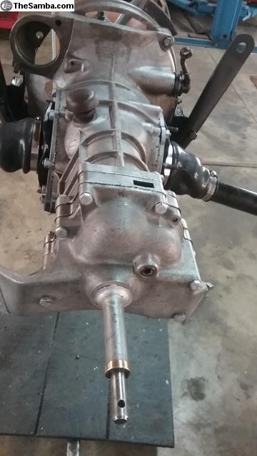 356 Speedster transmission. Completely rebuilt. Matching ring and pinion, set up with factory tools. Powder coated, axel tubes and flange. Solid axel boots. New transmission mounts. Modified front cover with installed shifting rod seal. Casing number is 644/20/101. Transmission number is 12217, 116/BBAB. Referrals on request. Local pickup preferred.
