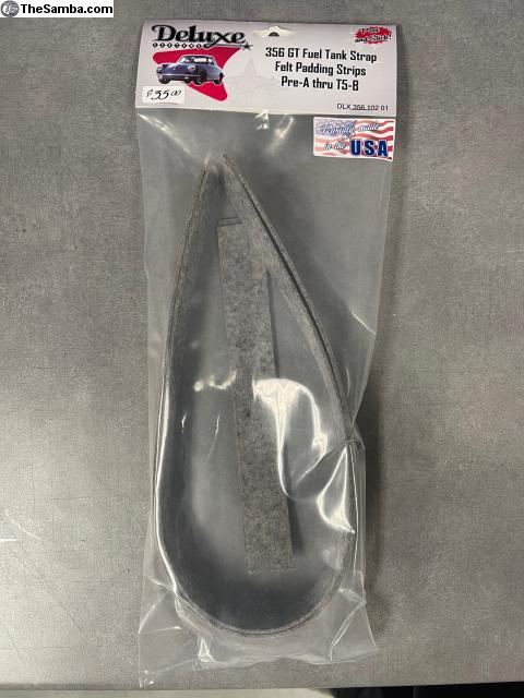 No more searching for the correct felt, measuring, cutting, gluing, and installing the felt for your fuel tank. This kit is cut to correct lengths and sticky backed to make it easy to peel and stick in less than 5 minutes work. This kit is made for the straps for a Pre A through T5 B GT 80 liter fuel tank. The kit covers the two straps over the gas tank as well as the strap attached to the body. The base felt kit for under the gas tank sold seperately on our website (part #DLX-356-103-00). This product is designed and manufactured exclusively by Deluxe Customs.