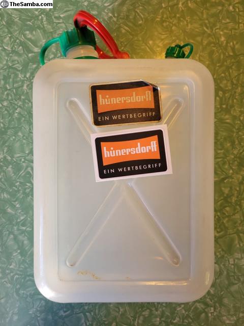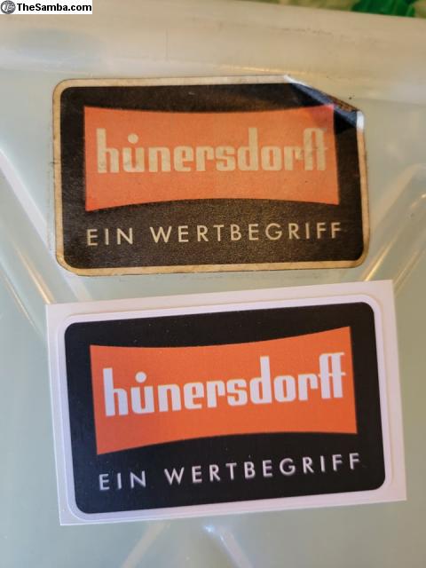 FINALLY! After many weeks of patience I was able to reproduce The Hunersdorff water bottle decals nearly exact to originals. Weeks of looking for a source for a suitable adhesive backed paper decal stock to match the originals, perfect scan of the original and color matched. once printed and cut these are brushed with a special clear coating to protect the paper and printing. These are super high quality and a perfect replacement for missing or damaged ones. Could also be used on newer Hunersdorff water bottles to be used in your camper as placeholders until you can find originals. $10 each/$30 a set of three shipped free worldwide via first class postage, I can do wholesale orders of over 100 for shops as well. PM me if interested and thank you.