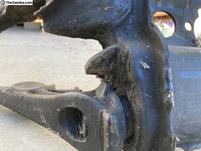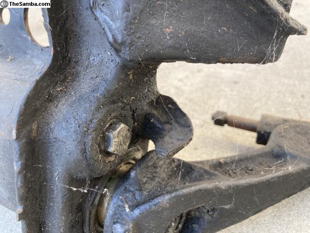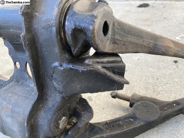 Here is a front beam out of a 1962 notchback. This will fit in all modes and all years of type 3s, but is slightly different than later beams. Beam is complete from control arm to control arm, does not include spindles. Also, it has been adjusted for a lowered ride height and the bump stop brackets have been removed. It will need control arm seals and three jam nuts. Shipping would likely be very expensive so please don’t ask unless you’re prepared to pay a couple hundred dollars or more.