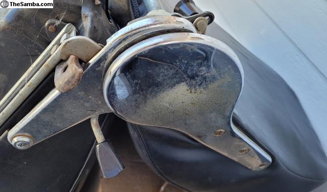 Matched pair of early 911/912 lowback front seats. Passenger seat is missing the black knob that goes on the lever to slide the seat back and forth otherwise seats are 100% complete. Chrome on drivers seat recliner is mint condition, chrome on passenger seat recliner is in good condition and will clean up with some elbow grease. Plan on repadding/recovering the seats unless your looking for the vintage look.
