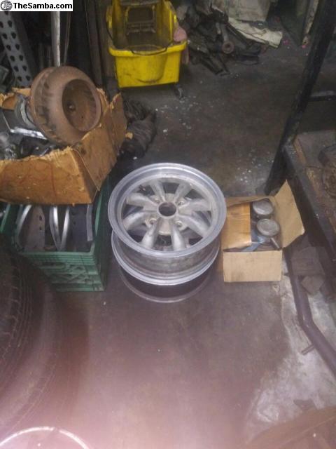 I have several 8-spoke wheels. Black/silver/gold/red. These are USA made, not Chinese like what's available today. Some have tires. Great condition. $65.00 each. Sometimes my emails through thesamba don't make it to me, so you might want to call me if you don't hear back from me immediately @ 714 406-9067. Thanks for looking.