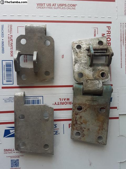 Ghia door hinges. One has broken piece, other is loose and will need re-pinned. Sold for parts or repair $15 all.
