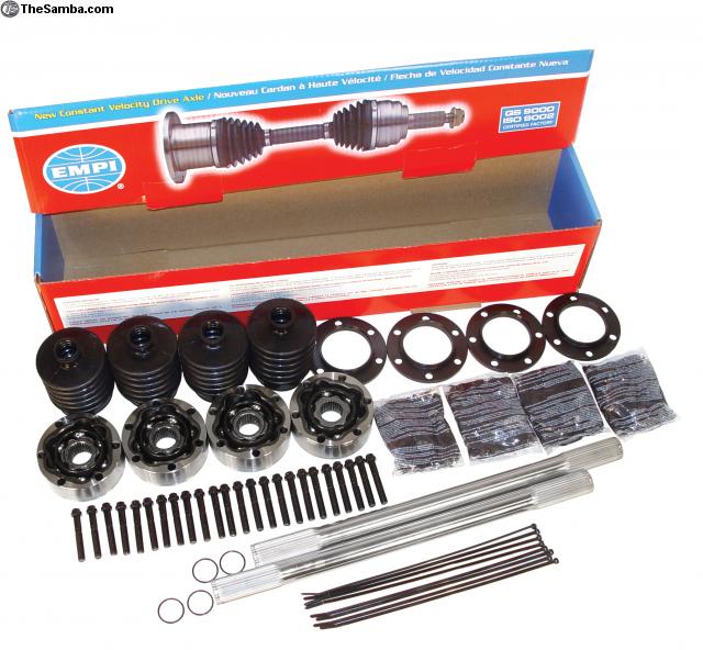 Take the guesswork out of putting together your high performance IRS axles. Complete axle kits are now available and come with Chromoly race axles, nylon boots, CV Joints, CV boots, flanges and grease. These axles are shipped unassembled. Type 2 kits supplied with CV joints and 8mm bolts. 930 kits supplied with CV Joints and 3/8 bolts. Be sure to match your kit up with the proper conversion stub axles if installing into a Beetle.