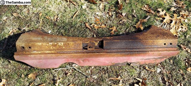 Rear apron in very usable condition, surface rust and pitting throughout, some dings here and there