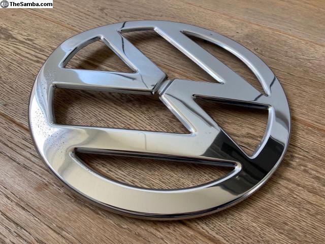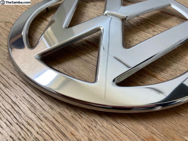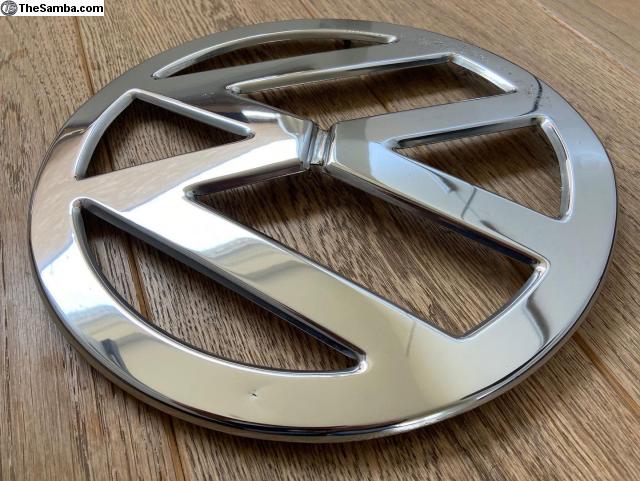 Here is a pretty nice Original German Chrome Deluxe Bus Nose Emblem for 1955-1957 Deluxe Buses including 13, 15, 21, and 23 Windows.