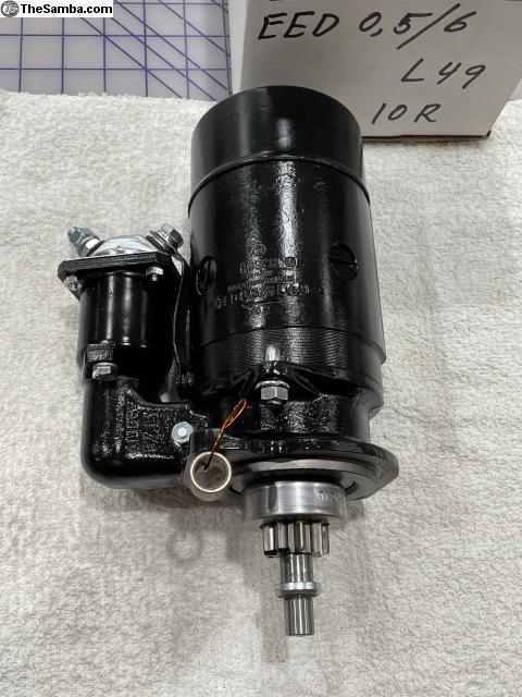 Here is a fully remanufactured early Bug, Bus, or Ghia German Bosch starter EED 0,5/6 L49. Date Code 10R 10/1960.