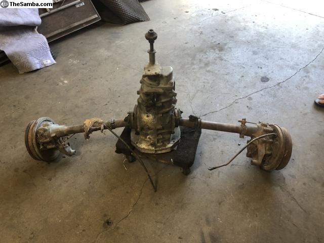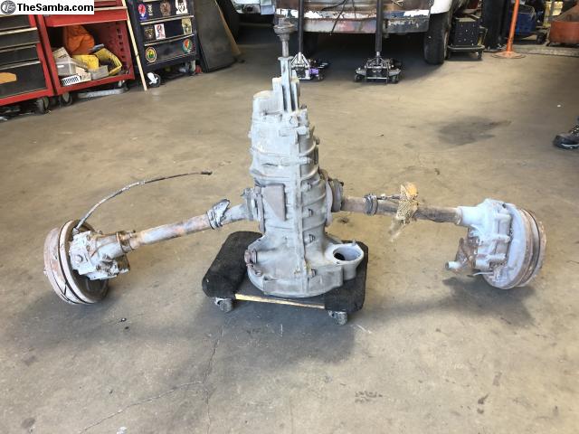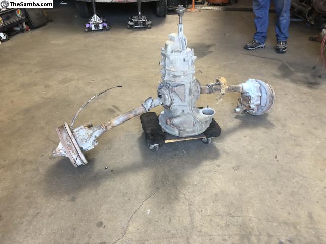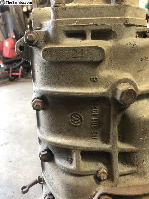 This is a split case Tranny in really good shape came out of a running and driving 1958 vw bus
