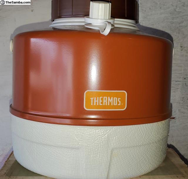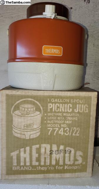 Like NEW vintage Thermos picnic jug Carmel color with Original Box