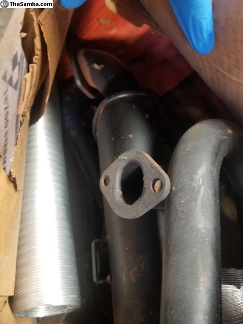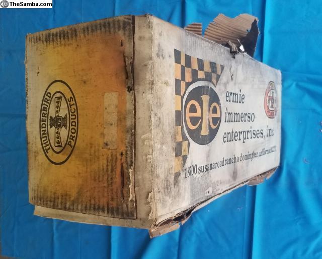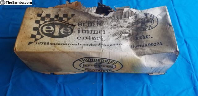 Here is a the real deal an NOS thunderbird exhaust that are no longer being made. This box is still sealed with the exception of a hole that was most likely created by a rat. From what I can see the, everything is still in the box. I don't have a part number but it looks like a quite pack style single exhaust. I can see it has the headers, J tubs and exhaust. I don't want to open the box complety show that it is indeed a NOS product.