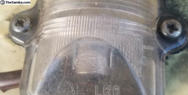 Here is a super straight and clean Helloa decklid license plate light. It fits a 64-67 but it looks like the original Yukon yellow color is on it which would make it off a late 66-67.