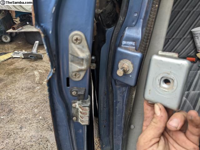 Metal part that's welded on the C Pilar for the sliding door rear latch pin.