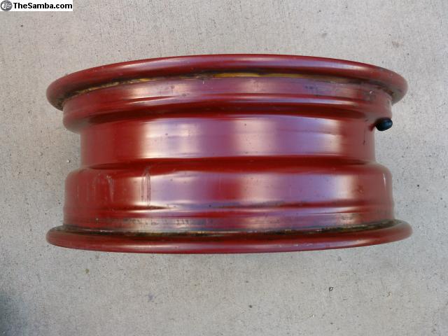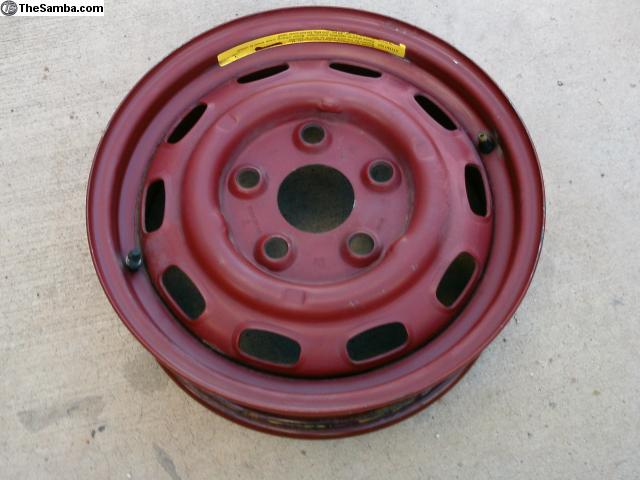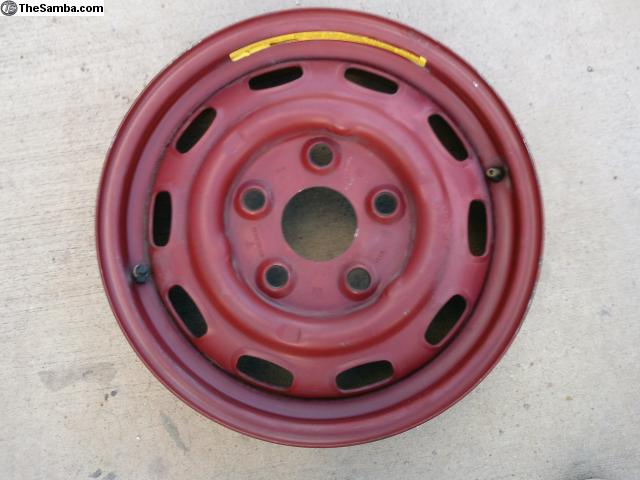 Original Porsche steel rim, 15x5-1/2", 5 on 130mm bolt pattern. Good condition, not rusty or bent, original red paint (was spare). ET53 offset. Buyer pays shipping, send zip code for quote.