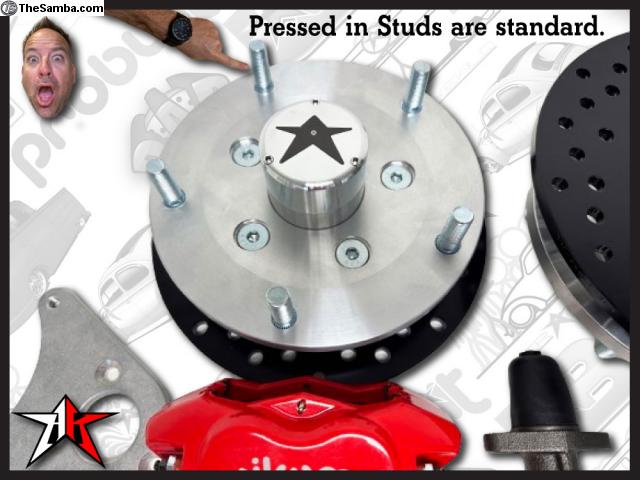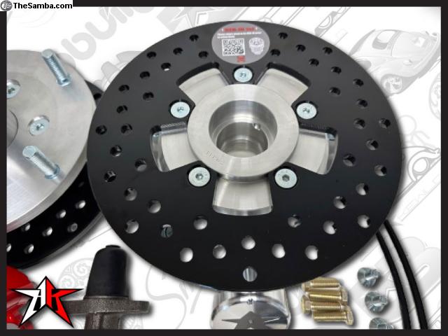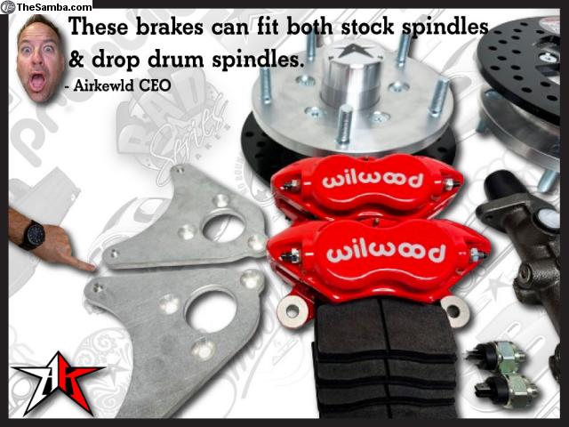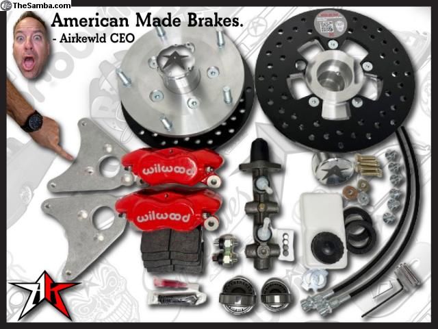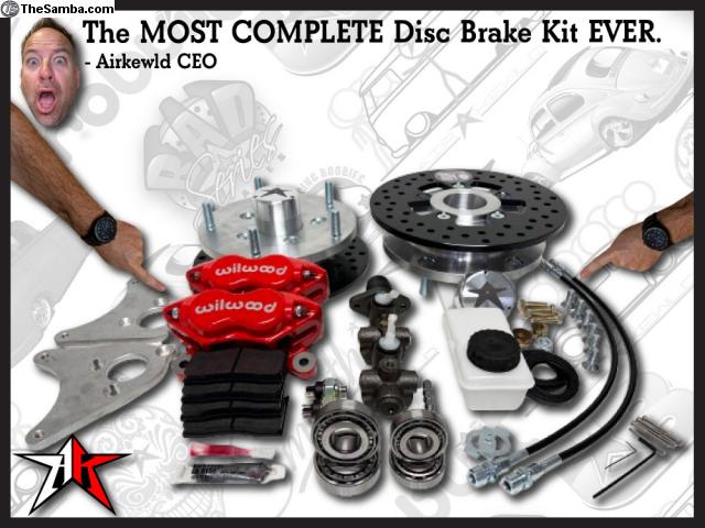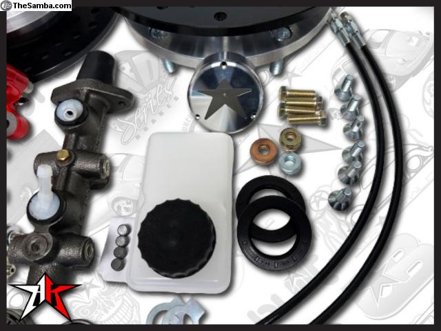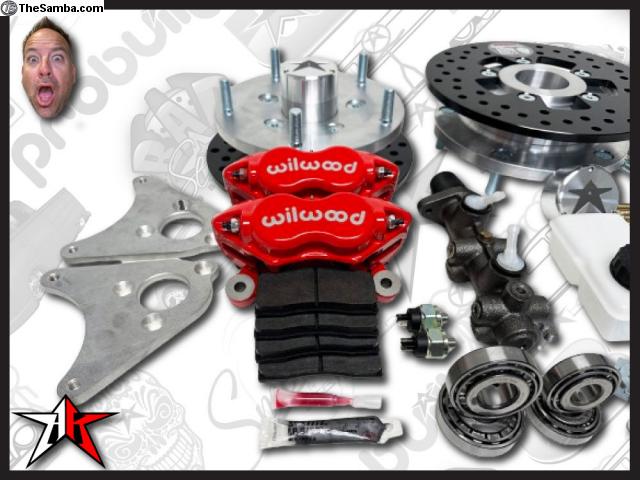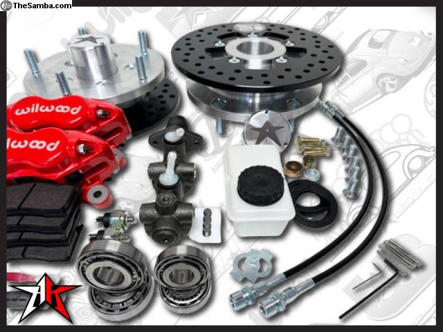 1949-1965 Type 1 Beetle/Ghia Front Disc Brake Conversions - Link Pin - https://www.airkewld.com/Classic-VW-Front-Disc-Brake-Kit-4150G2-p/4150g2.htm - All front kits will come with BAD Series rotor assemblies (bolt patterns are removable to allow to change from Chevy, Ford, Porsche or Wide 5x205mm), caliper brackets, calipers (2 or 4 piston Wilwood's), pads, master cylinder, seals, hardware, bolt-on billet dust caps (tools included), German roller bearings, reservoir bottle, brake light switches and stainless steel braided brake lines. These are the most complete kits on the market to ensure you can do the job correctly and safely.