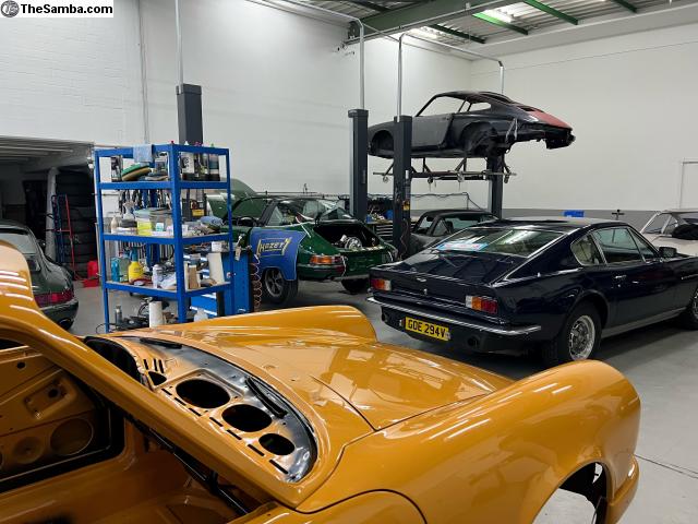 We restore Porsche 911 and 912s to perfection here in Germany. Our actual restoration line includes rare early 912s (colour, sunroof, real early 65s)