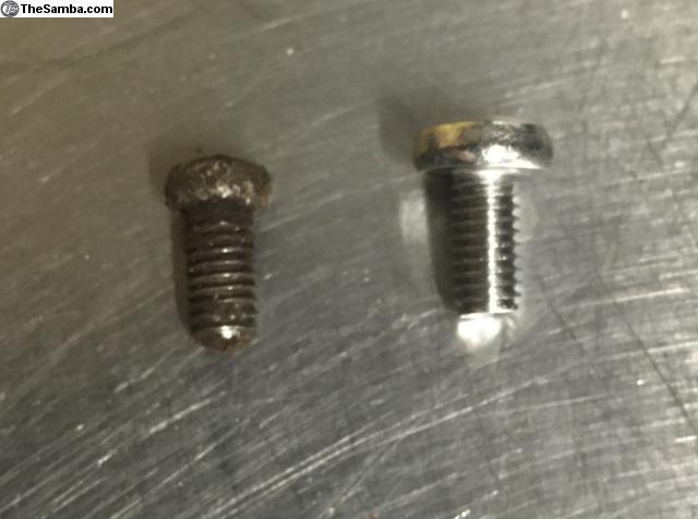 M4 x 0.7 x 8mm stainless steel Phillips head screws to retain the headlight retention ring on 1968-1979 Type I headlights. These will not corrode like the OE screws! These are a direct replacement of the OE screw despite the head of the screw being slightly larger in diameter. Set of 6 (3 per headlight). May fit other classic Volkswagens. $3 plus shipping. These can be ordered at www.aircooledevolution.com/products