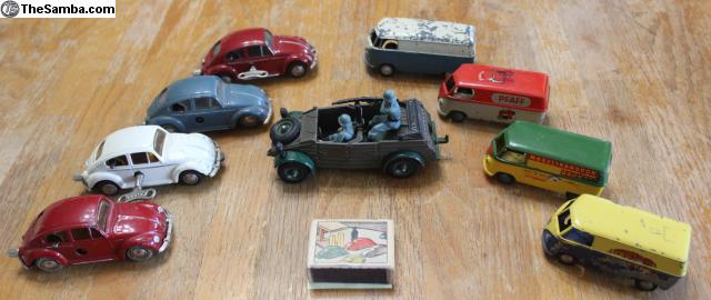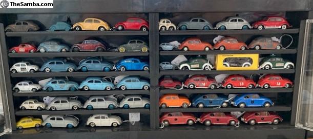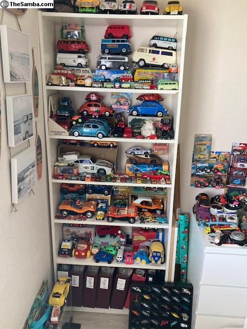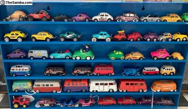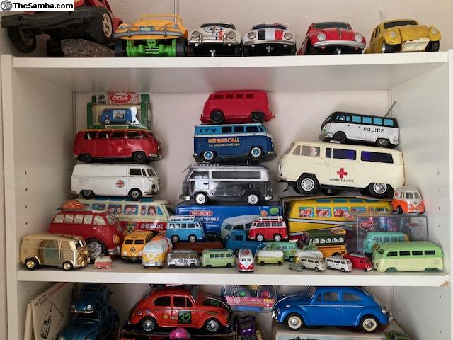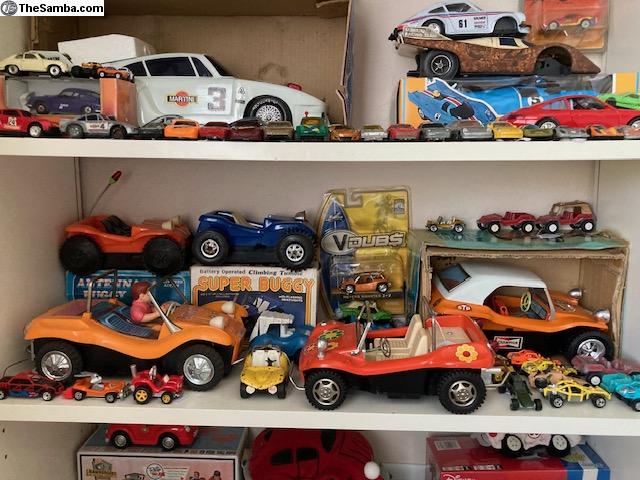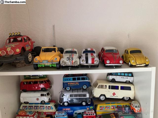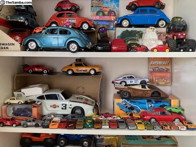 I have a huge collection of toy VW's that I would like to sell (as a collection, not 1 at a time) or trade for a running (or not) VW Baja Bug or Dune Buggy project. I have various Beetles, Buses, Ghias, Type 3s, Dune Buggies, Porsches, and Things. I even have a few water-cooled VW's. They range from NOS to poor condition. Brands include but are not limited to Brekina, Bandai, Taiyo, Ichimura, Huki, Dux, Tekno, Marklin, Arnold, Gama, Corgi, Dinky, CKO, Wiking, Endoh, Siku, Majorette, Maisto, Tootsie-Toy, Hubley, Galoob, AW, Shuco, Lesney, Hot Wheels, Matchbox, JADA, Greenlight, Johnny Lightning, M2, ... I have 4 display cases and 6 large tubs yet unpacked. I'm only showing a fraction of the collection. For more recent pics, see also: https://www.thesamba.com/vw/classifieds/detail.php?id=2753195
