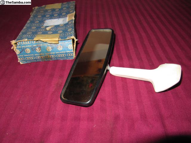 New Old Stock interior rear view mirror for a Bay Window Bus from 1970 - 1973. Volkswagen part number 211 857 501H. VW logo. Day / night adjust. Nice NOS condition. Any questions email or call Fred.