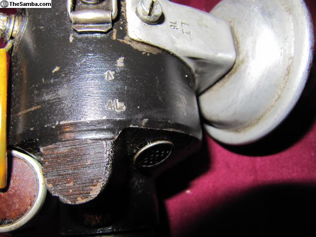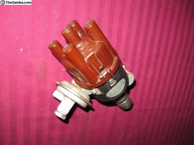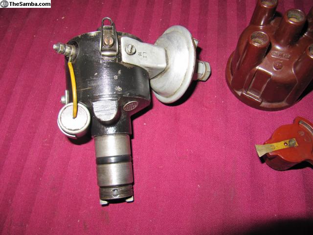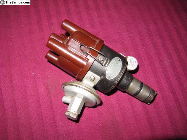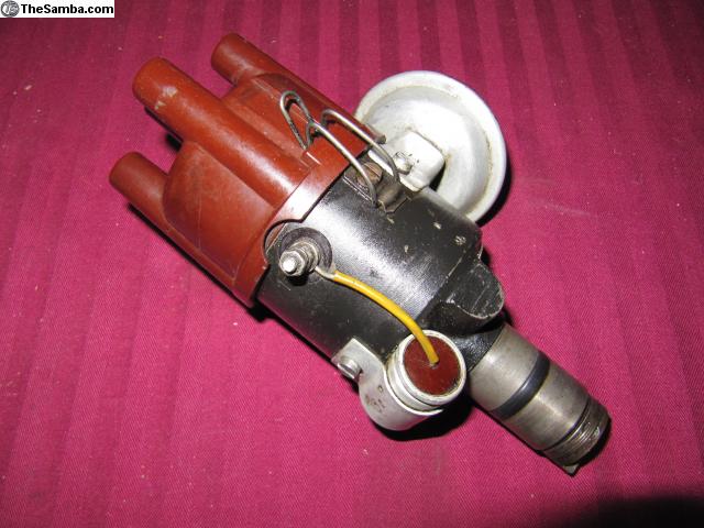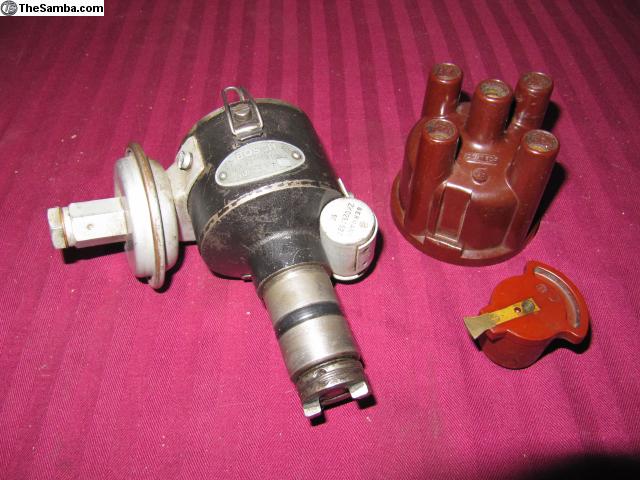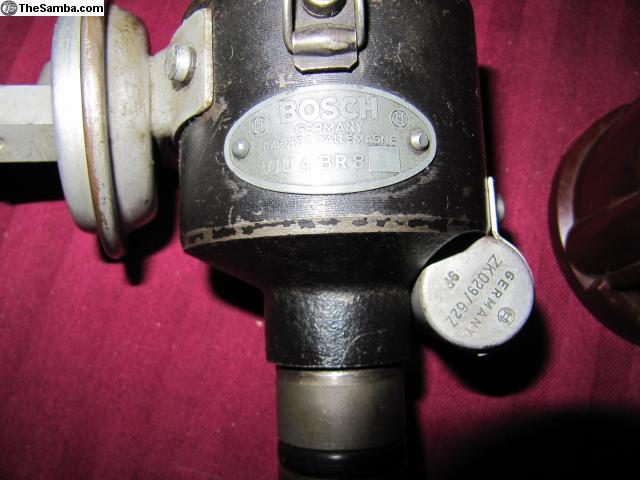Bosch VJUR4BR8 cast iron 36hp distributor. Date stamped 4L (April 1955). Nice badge. Correct for 1955 Beetle but will fit 1954 – 1960 Beetle or 36hp Karmann Ghia. Very clean interior. Correct early German Bosch points, large yellow tail condenser, fan-tail rotor and dark brown cap and wire cap clips. Any questions email or call Fred at TransportationEmporium.