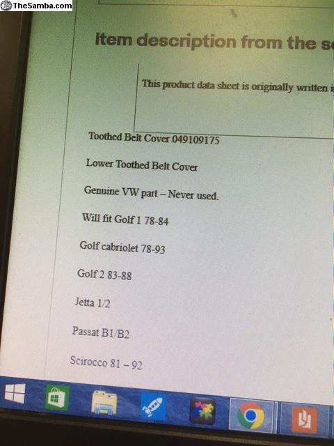 NOS genuine vw part. lower timing belt cover. brand new, never installed. $15.00 plus shipping. fits various watercooled vw engines. see picture below for application.