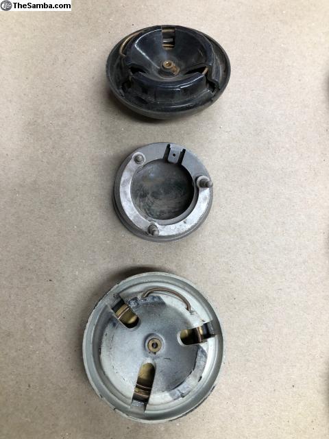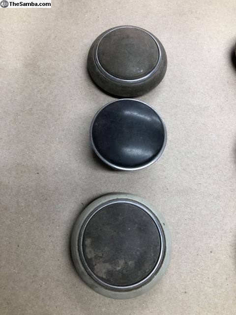 Nice original horn button with ring, bushings, and screws. Pictured in the middle.
