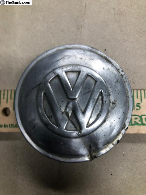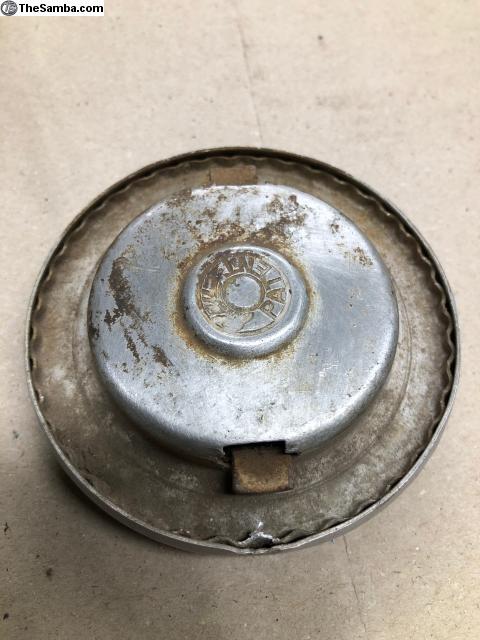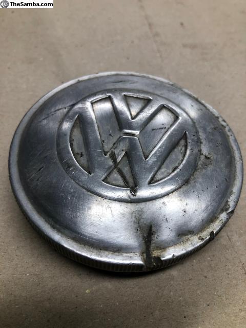OG 80mm gas cap for Beetle or Ghia. Couple dents and one gouge to the edge. Function is fine.