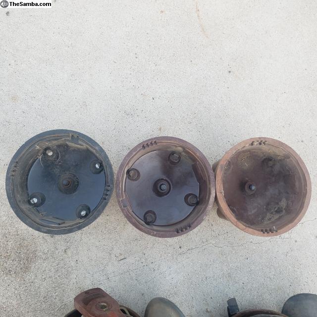 Here is a lot of 4 Bosch VW 40hp distributor cores in various conditions. All vacuum cans seem to hold and shafts spin. 3 various caps, 2 rotors, and all cap retainer clips present minus 1. $50 shipped to USA cities. Thanks Samba!