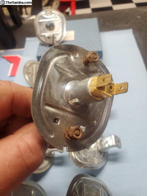 These are very nice used Hella branded bulb holder bases for dual element bulbs, correct for 67-69 Bug. $20 each or $35 a pair, plus shipping.