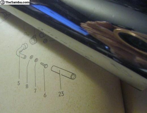 Genuine German for Volkswagen. NewOldStock NOS: Believe to be one (1) Part Number 343 251 285. Chrome trim pipe for mounting on tail pipe (not resonator)! Approximately 146 MM long and 38 MM wide inside to inside! Application Type 3 and Type 34 to Engine Numbers K 0 198 000/M 0 004 266, T 0 933 000/P 0 006 900, U 0 502 000 through July 1971 when using correct exhaust parts. Mounts on tail pipe as shown in Illustrated Parts (curved piece of metal and two screws-Not Included) Has two holes at mounting end for the attachment parts and another hole at the bottom tip for drainage. No markings, perhaps GHE, as that is ones I have seen, sometimes the logo imprint is very light to nonexistent. This piece wasn’t carefully stored down through the years, has many minor scratches and the inside (which most all have, no chrome inside) This one had some rust inside where chrome not processed, cleaned out, rust killed, applied coating of clear 2,000 degrees Fahrenheit exhaust paint for longevity. Clean Clean, Very Minor scuffs/scratches, Polished to a Faretheewell! So, without the referenced curved metal and screws, one needs to come up with means of mounting this, suggesting flat nuts for inside and matching screws from outside, or make a curved metal piece and drill and tap, only suggestions. Number 23 Illustrated Parts refers. Ensure Application. $31mailedLower48. U S Postal Money Order obtained from your local Post Office and filled out accordingly (lots of folks never heard of a postal money order!!?).