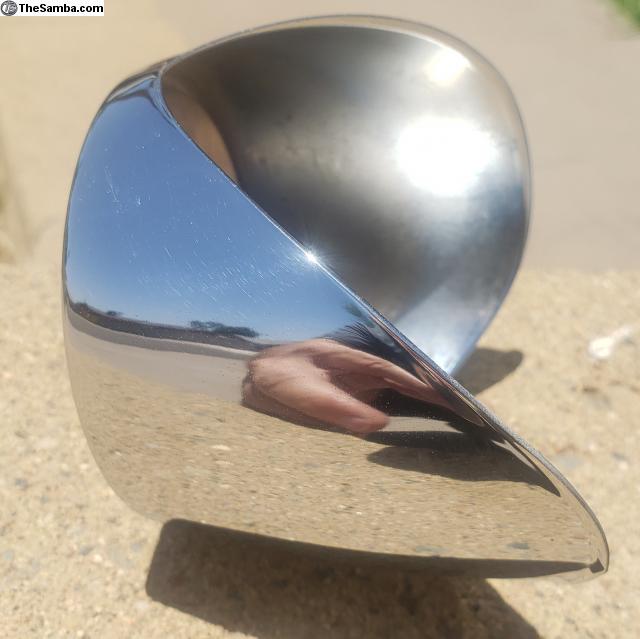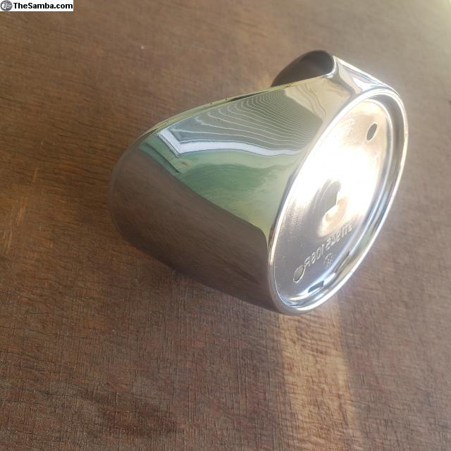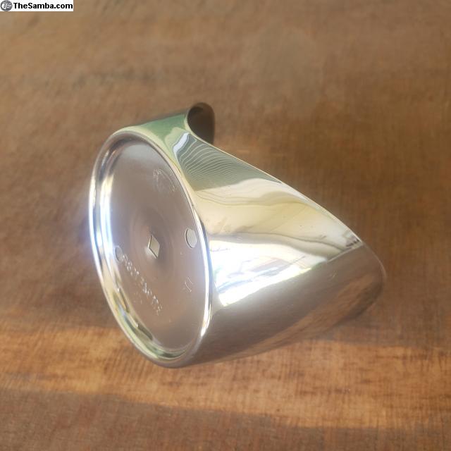Here is a really nice condition used VW Type 3 right rear short chrome reflector housing for 1968-1969. Very small blem on outer front rim as shown, but otherwise very clean. $26 shipped to USA cities.
