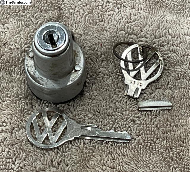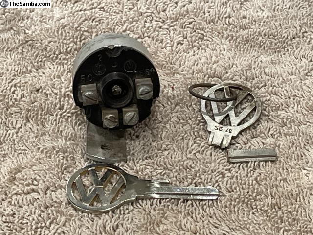 Here is an original 1954-57 Oval Bug ignition switch with one good new key. Comes with the original key that was broken in half.