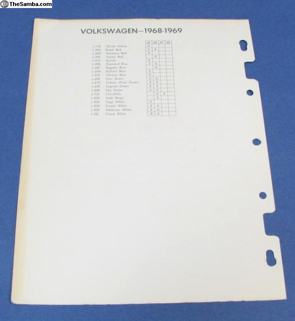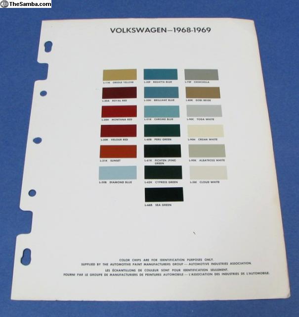 Original 1968-1969 Exterior VW Paint Color Chips Price: $30