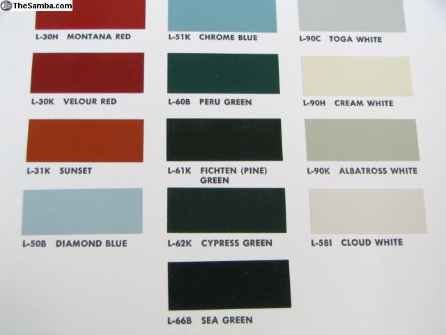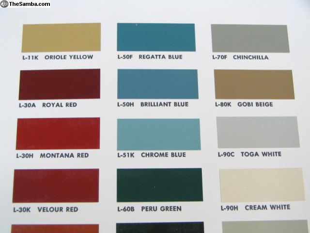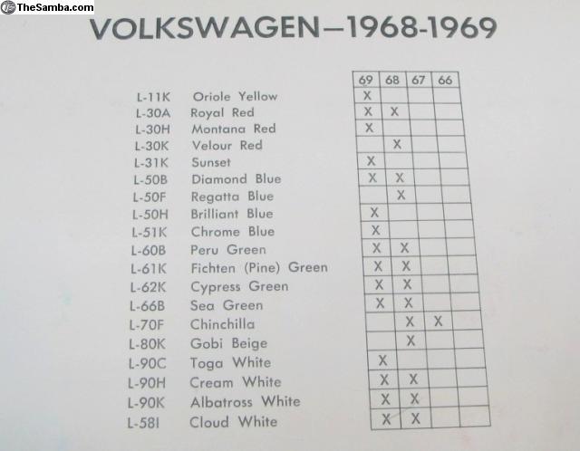 These are great if you are a collector of early literature or if you're restoring an early VW and need help with original colors. The colors listed were probably used for other years as well.