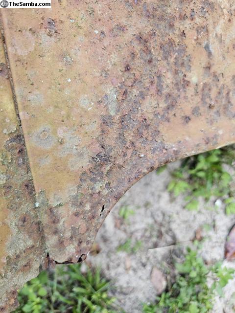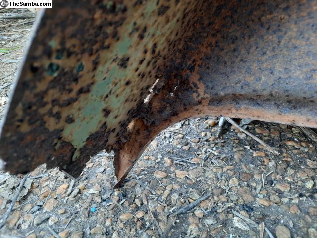 --Early bay bus sheet metal: front floor, rear corners, front wheel wells, passenger door, drip rail