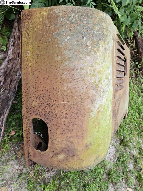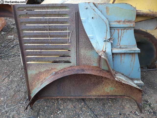 Drivers side and passenger side engine vent and fender sheet metal. This has the outward facing vents and the rolled lip fender; correct for 7/1962 to 3/1963 busses. May also work for Brazilian busses with this fender lip and vent combination.