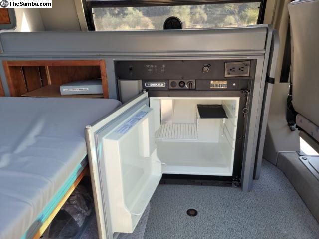 The Classic Volkswagen Camper: Just like the Volkswagen Vans of yesteryear, the Eurovan Full Camper features the Pop Top Roof and upper bunk that sleeps 2 or folds back to allow for up to 7' of interior headroom. Unlike its older siblings, the Eurovan features anti-lock brakes, airbags, a/c and, reliability. Typical Volkswagen Crafting offers a galley that includes a stainless-steel sink, stove, and 3-way powered refrigerator that allows you to keep food cool whether you are sitting in a campground or somewhere a little further off the beaten path. The rear bench seat folds down into a bed for two and the pantry, closet, and under-bed storage take advantage of every nook and cranny inside. There's even dedicated utility storage and the perfect spot for a porta-potty (not included) under the rear bed platform. Onboard freshwater storage, an auxiliary battery, and a propane tank all contribute to keeping you off the grid longer. Whether it's for Weekends, a Week, or Full-Time, this original VanLife van is sure to help you wander. Looking for more? We have more vans in stock as well as many upgrades and accessories to tailor the van to your needs.