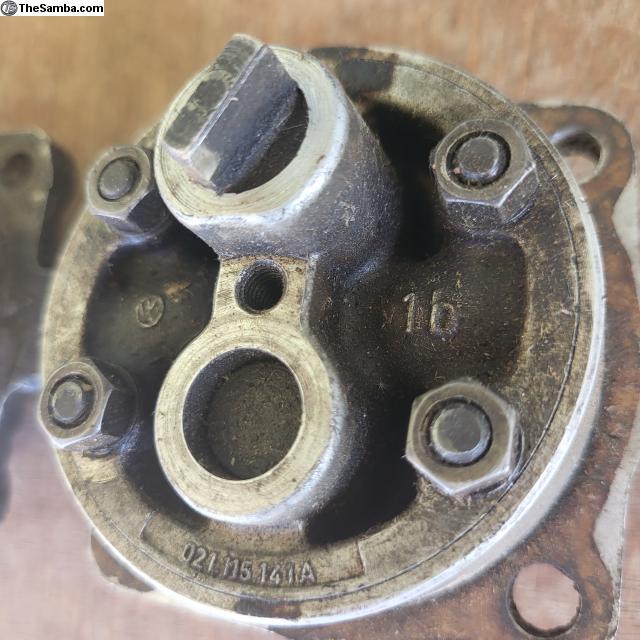 Here are a couple of used oil pumps for 1972 and later Type 2 bus, Type 4, and Porsche 914.  Cleaner pump gears turn smoothly and dirtier one turns well but a little "notchy".  Both untested.  $35 each or both for $50.